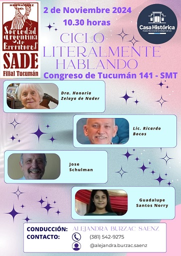 Letras de Fuego / Noticias. La Sociedad Argentina de Escritores (SADE) Filial Tucumán reeditó un ciclo tradicional, como lo es “Literalmente Hablando”, y lo hizo de la mejor manera en un lugar emblemático, como el Museo Casa Histórica de la Independencia.