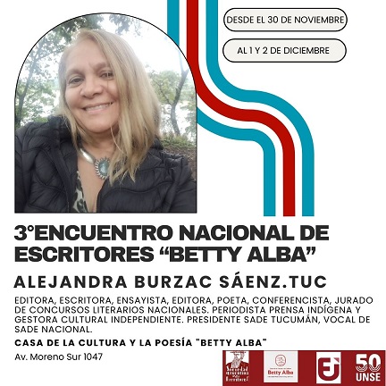 En diálogo con Diario Cuarto Poder, la presidente de la SADE Tucumán, Alejandra Burzac Sáenz, confirmó una importante presencia de asociados en el 3° Encuentro Nacional de Escritores “Betty Alba” a realizarse en Santiago del Estero.