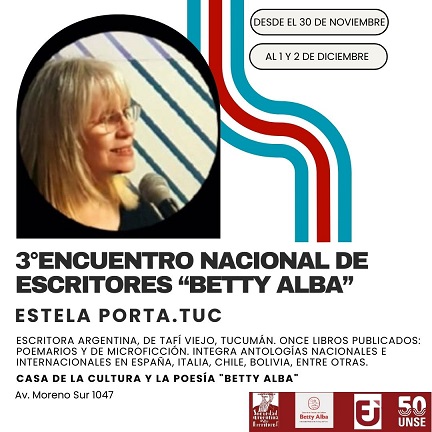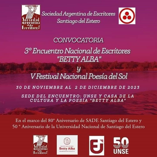 También se llevará adelante, entre el 30 de noviembre y el 2 de diciembre, el V Festival Nacional “Poesía del Sol” organizado conjuntamente por la SADE Santiago del Estero y la Universidad Nacional de Santiago del Estero (UNSE).