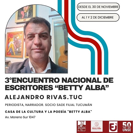 Letras de Fuego / Noticias. El 3° Encuentro Nacional de Escritores “Betty Alba”, que organiza la Sociedad Argentina de Escritores (SADE) Filial Santiago del Estero, contará con la presencia de un importante grupo de autores tucumanos.