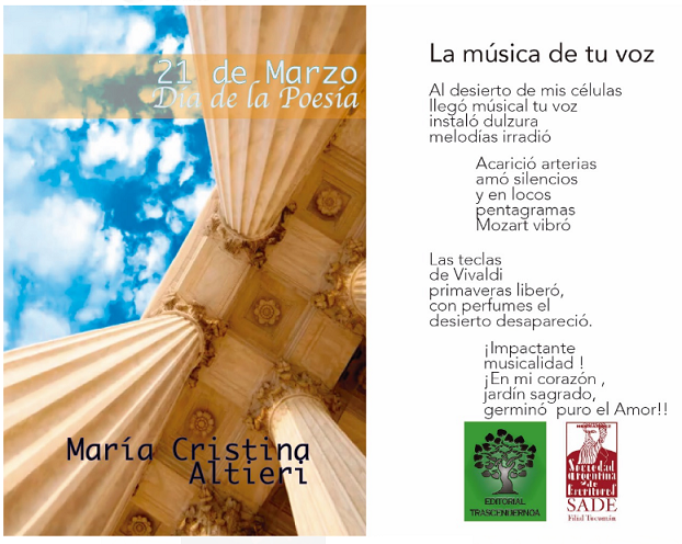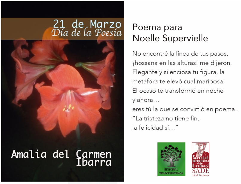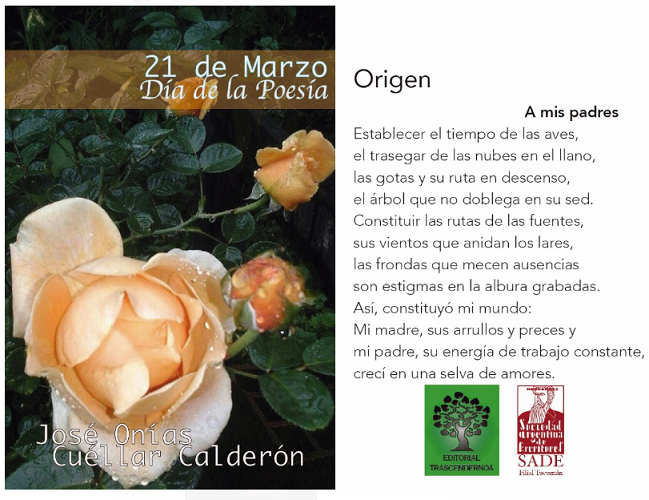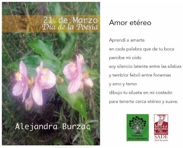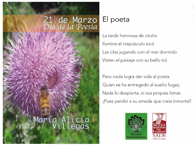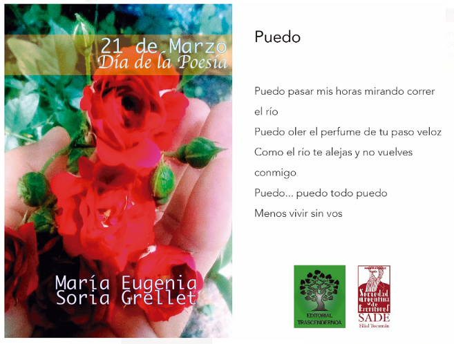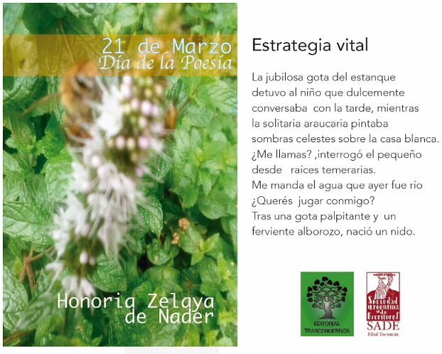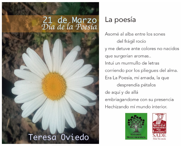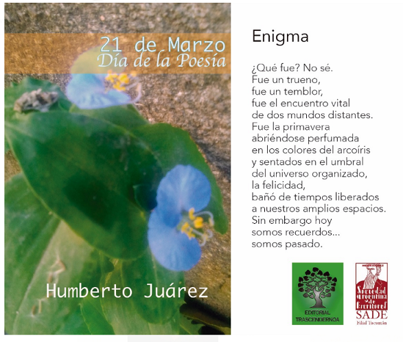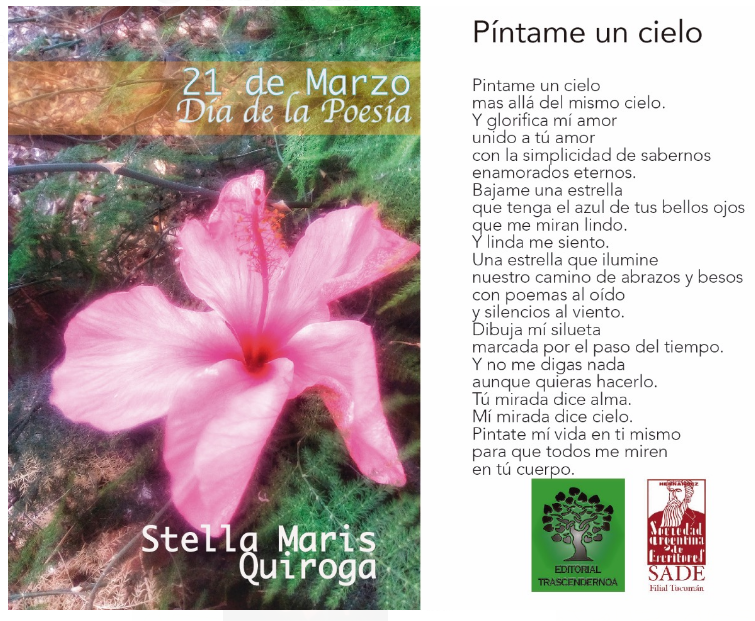 Por conmemorarse hoy el Día Internacional de la Poesía la Sociedad Argentina de Escritores (SADE Filial Tucumán) confeccionó postales poéticas para liberar en las redes sociales con la finalidad de hacer fluir la poesía y facilitar el acceso a ésta maravillosa expresión del alma.