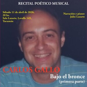 - “Bajo el bronce” (Primera parte), de Carlos Gallo. A las 20 en la Sala Lazarte, de Lavalle 145, San Miguel de Tucumán. Narración y piano: Julio Lazarte.