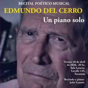 - “Un piano solo”, de Edmundo del Cerro. A las 20 en la Sala Lazarte, de Lavalle 145, San Miguel de Tucumán. Recitado y piano: Julio Lazarte.