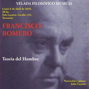- “Teoría del hombre”, de Francisco Romero. A las 20 en la Sala Lazarte, de Lavalle 145, San Miguel de Tucumán. Narración y piano: Julio Lazarte.
