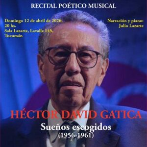 - “Sueños escogidos”, de Héctor David Gatica. A las 20 en la Sala Lazarte, de Lavalle 145, San Miguel de Tucumán. Narración y piano: Julio Lazarte.