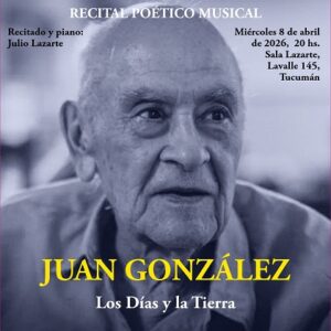 - “Los días y la Tierra”, de Juan González. A las 20 en la Sala Lazarte, de Lavalle 145, San Miguel de Tucumán. Recitado y piano: Julio Lazarte.