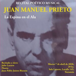 - “La espina en el ala”, de Juan Manuel Prieto. A las 20 en la Sala Lazarte, de Lavalle 145, San Miguel de Tucumán. Recitado y clave: Julio Lazarte. Flauta: Juan Pablo Juárez Biasuso.
