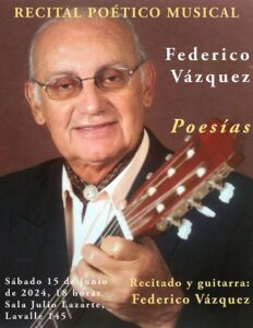 - Sábado 15 de junio: “Poesías”, de Federico Vázquez, a las 18, en Sala Lazarte. Recitado y guitarra: Federico Vázquez.