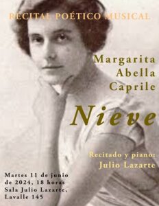 - Martes 11 de junio: “Nieve”, de Margarita Abella Caprile, a las 18, en la Sala lazarte. Recitado y piano a cargo del Maestro Julio Lazarte.