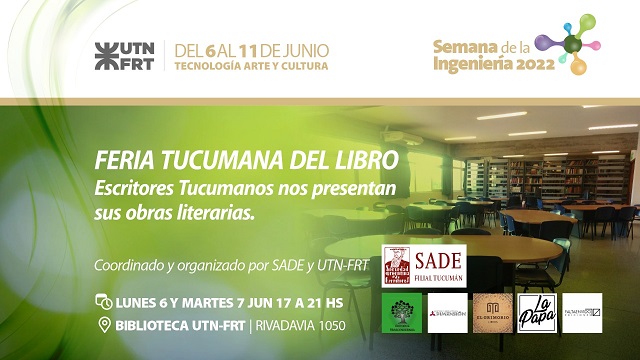Semana de la Ingeniería 2022 / Junto a las Letras. Coordinada y organizada por la Facultad Regional Tucumán de la Universidad Tecnológica Nacional (UTN-FRT) y la Sociedad Argentina de Escritores Filial Tucumán (SADE) se inaugurará la Feria Tucumana del Libro.