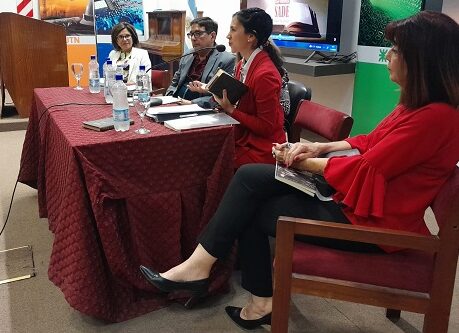 Luego se inició la mesa panel Día Internacional del Libro y Día del Derecho de Autor, con la participación inicial de la profesora Laura Toledo, quien enfatizó en las distintas miradas sobre el libro de grandes autores y referentes de la historia universal.