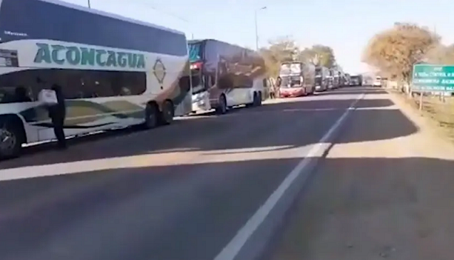 Desde la frontera salteña de Salvador Mazza un chofer de camiones grabó un video mostrando la larga fila de colectivos en el paso fronterizo. Los ocupantes son bolivianos que buscan entrar a Salta para cobrar el Ingreso Familiar de Emergencia (IFE).