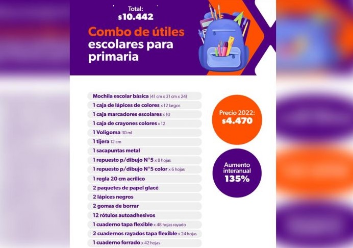 En tanto, una canasta básica para escolaridad inicial de escuela pública ronda los 4.000 pesos y trae menos elementos.
