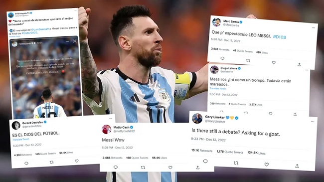 “¿Todavía hay debate? Preguntando por el GOAT -mejor jugador de todos los tiempos-”, escribió en Twitter Gary Lineker, leyenda de la selección inglesa y fan reconocido de Messi. “No te cansás de demostrar que sos el mejor del mundo. Que se pare todo el mundo para aplaudir todo lo que este muchacho le da al fútbol”, lo homenajeó Luis Suárez, su amigo y ex compañero.