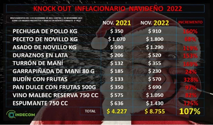 Se vienen los festejos de Noche Buena, esperando la Navidad, donde muchas familias intentarán armar la mesa sin morir en el intento. Es que la mayoría de los productos que se consumen esas noches aumentaron muchísimo sus precios al punto de que al comparar con el año pasado se observan subas del 100 por ciento.