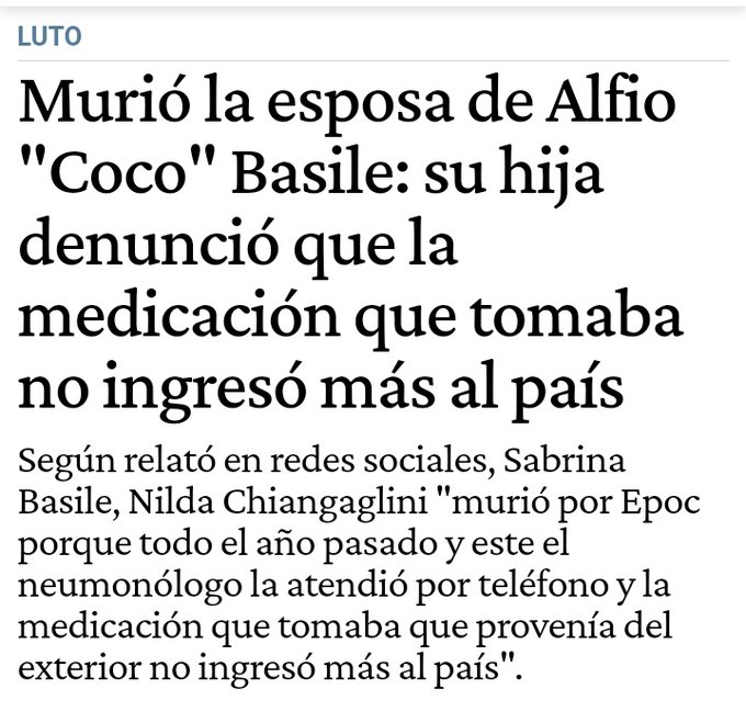 “A mi madre la abandonaron como a todo el mundo el año pasado, que solo atendían Covid. Además que dejaron de importar la droga alemana que ella tomaba para su enfermedad. La reemplazaron por una nacional que agravó su cuadro. No nos dejan velarla por estos protocolos de mierda”, denunció Natacha.