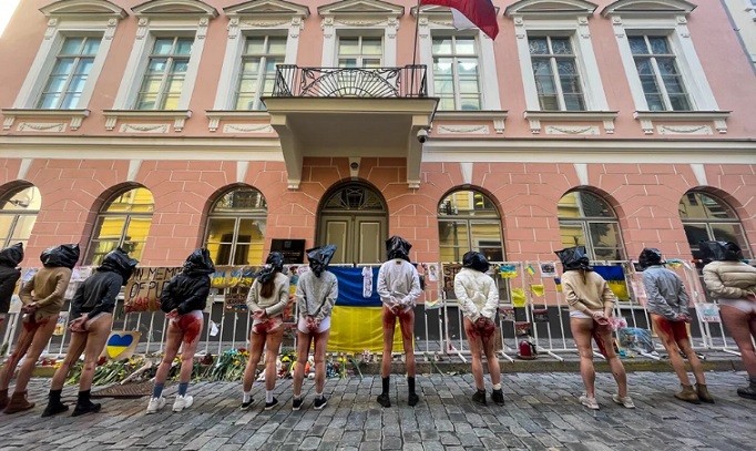 Imagen publicada por el diario digital ucraniano Nikilayev que muestra a Irina Krashkova, una mujer de 29 años, del pueblo de Vradiyevka, violada y golpeada por los soldados rusos. (Novosti-Nmk.ua).También se vio que los ataques sexuales tuvieron una organización que excedía, en mucho, a las posibles acciones individuales de algún soldado. La Defensora del Pueblo ucraniana, Lyudmyla Denisova, informó que 25 adolescentes fueron retenidas en un sótano de la ciudad de Bucha y violadas en grupo. Nueve de ellas están ahora embarazadas. En esa zona se encontraron decenas de cadáveres de mujeres desnudas y con las manos atadas a la espalda. Algunas tenían los genitales mutilados. También hubo varios chicos varones en esas condiciones. A otro grupo de mujeres que atraparon ayudando a la defensa, las hicieron desnudar, les afeitaron la cabeza y las torturaron introduciéndoles armas en sus cuerpos.
