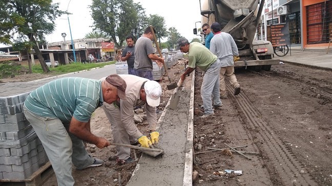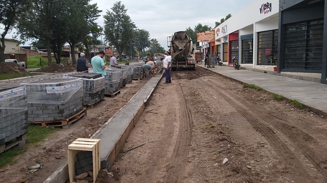Luego de colocar en su totalidad el pavimento articulado en la calle Mitre, siguen los trabajos del llenado de platea en la bocacalle entre Rojas y Mitre.