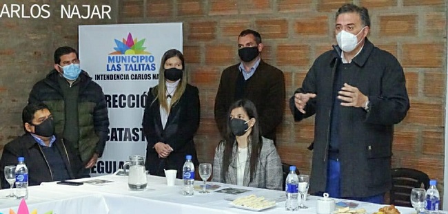 El intendente Carlos Najar mantuvo una importante reunión con emprendedores inmobiliarios que llevan adelante proyectos de urbanización en Las Talitas, trabajando conjuntamente la parte pública con la privada, en beneficio de la comunidad.