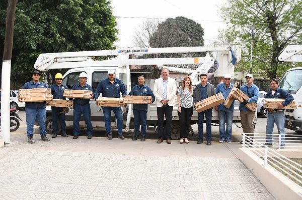 El intendente y legislador electo Carlos Najar y la legisladora e intendenta electa Marta Najar, hicieron entrega al departamento eléctrico de una nueva tanda de luminarias led para la colocación de las mismas, en diferentes zonas del municipio.