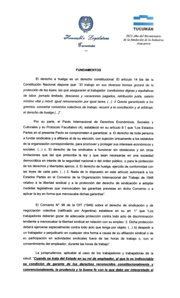 Los parlamentario reclaman la restitución del dinero descontado y fundamentan la medida en el derecho constitucional de todo trabajador de huelga.