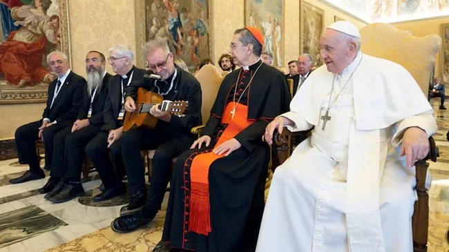 Antes de escuchar la canción, el Santo Padre destacó la importancia del diálogo interreligioso y recordó que cuando era niño había una actitud condenatoria hacia los otros credos. “Dios se manifiesta en todas las culturas, es padres de todos”, recordó Francisco al reafirmar la importancia del diálogo. Y agregó: “Pero no diálogo con el espejo, sino con la realidad y con respeto”.