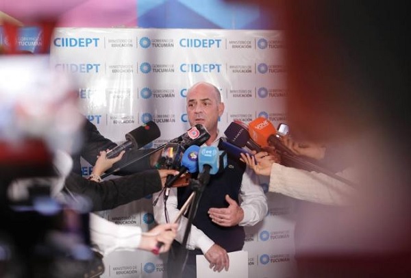 En el Centro de Innovación CIIDEPT, el ministro de Educación Tucumán, Juan Pablo Lichtmajer, brindó una conferencia de prensa para brindar detalles sobre los casos en las escuelas Obispo Molina y Normal Juan Bautista Alberdi, que trascendieron esta semana, además de informar la situación actual en la Escuela Bernardo de Irigoyen.