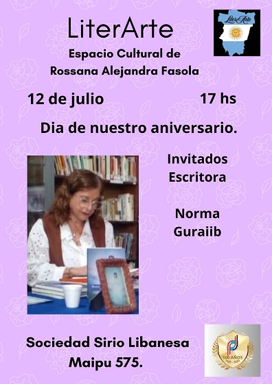 Las actividades se desarrollarán este sábado 12 de Julio, desde las 17, en la Sociedad Sirio Libanesa, en Maipú 575, de la ciudad de San Miguel de Tucumán. Cabe destacar que LITERARTE es un espacio sin fines de lucro.