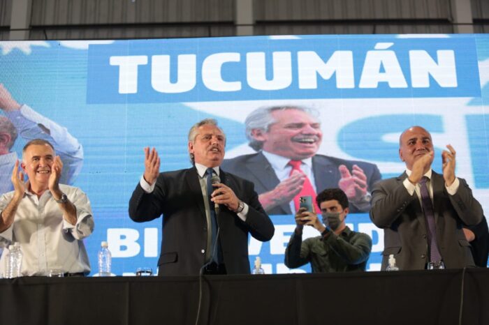 El presidente Alberto Fernández encabezó en Tucumán un multitudinario que se llevó a cabo en el predio de ATSA, donde estuvo acompañado por el gobernador Osvaldo Jaldo, el Jefe de Gabinete, Juan Manzur; el vicejefe de Gabinete, Jorge Neme, el ministro de Seguridad de la Nación, Aníbal Fernández y dirigentes peronistas de toda la provincia.
