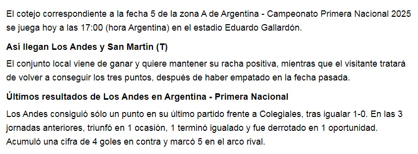 ¿San Martín podría cambiar el esquema contra Los Andes? Su DT, Ariel Martos, marcó que baraja opciones y no descarta la idea de poder buscarle algo más de compañía a Martín Pino: “Son posibilidades, las pienso, no las descarto, por ahora venimos bien con este sistema, sobre todo en lo defensivo, queremos encontrar la vuelta en el aspecto ofensivo, pero sí, no descarto modificar el sistema para nada”.