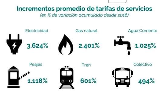 Las boletas de gas, luz y agua sufrieron fuertes tarifazos desde la llegada de Mauricio Macri a la presidencia. Los incrementos desde diciembre de 2015 hasta el presente superan en algunos casos el 3600%., como en la energía eléctrica.