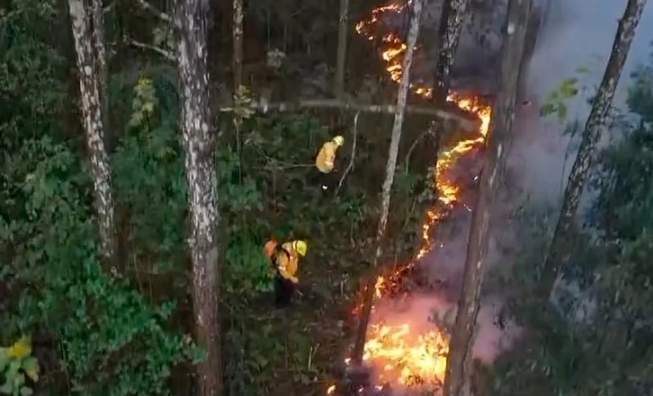 Brigadistas lucharon contra las llamas en un incendio forestal ocurrido en la zona del cruce de las rutas provinciales 324 y 325.