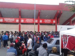 Con sillas, heladeras portátiles con comida y bebida y el infaltable mate y termo con agua caliente, buena parte del numeroso público incluso acampaba en las inmediaciones del estadio desde anoche a la espera de que se habiliten las boleterías.