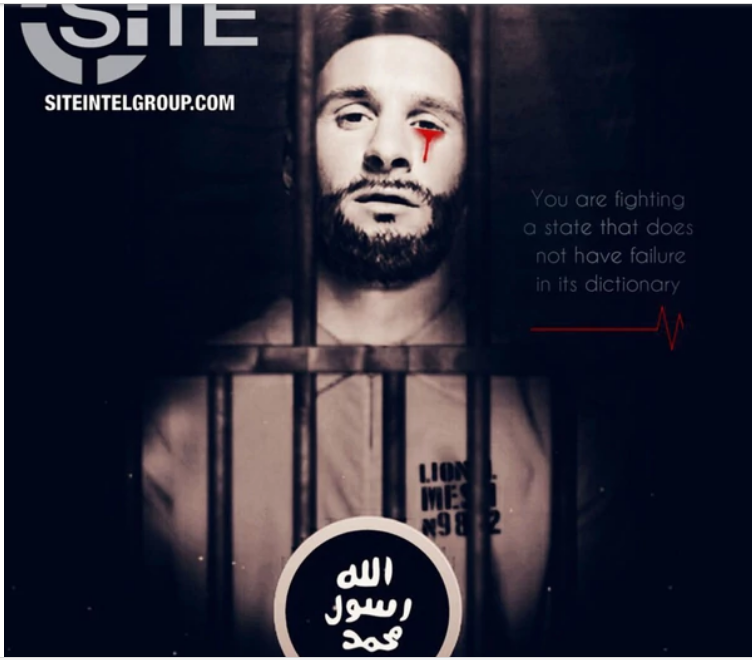 La estrella argentina de fútbol aparece en el último afiche intimidatorio del grupo terrorista, que ya prometió atentar contra el Mundial de Rusia 2018.