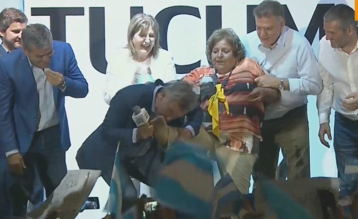 La desesperación se patentiza cuando es capaz de besarle el pie a una señora que lo único que buscaba era que le cantara el cumpleaños feliz. Quizás Macri no quiso desafinar como cuando buscaba imitar la voz de Fredy Mercury y prefirió una mentirilla más de Pinocho para convencer a la gilada.