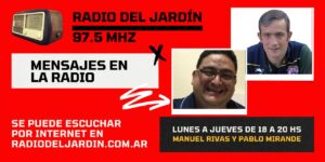 Radio del Jardín será la caja de resonancia de “Mensajes en la radio”, de lunes a jueves, en el horario de 18 a 20, en 97.5 MHZ. Además se podrá seguir las emisiones a través de internet, en la página www.radiodeljardin.com.ar