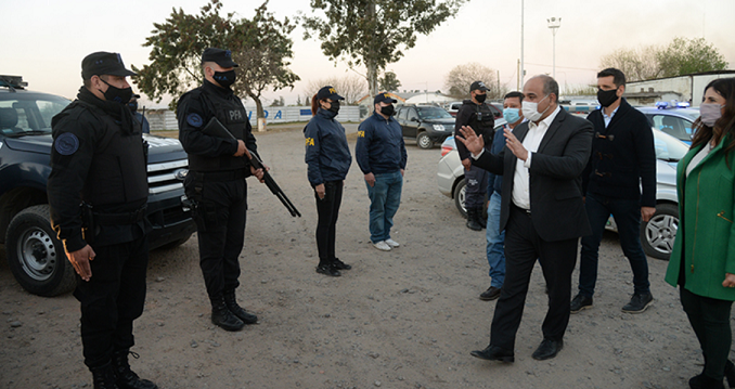 El gobernador, Juan Manzur, hizo un alto en un control policial en Banda del Río Salí para dirigirse a los uniformados que se encontraban realizando tareas de prevención en el puente Lucas Córdoba.
