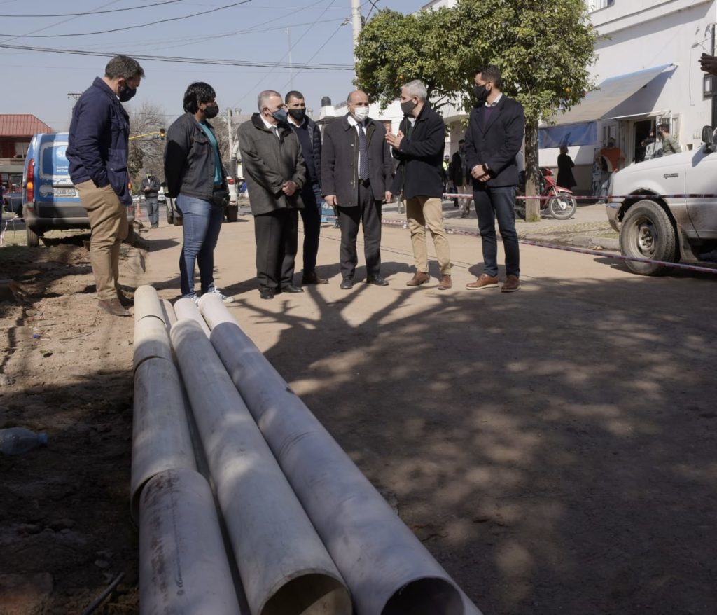 El gobernador Juan Manzur junto al vicegobernador Osvaldo Jaldo, visitaron las obras que está realizando la SAT en calle San Miguel al 900 de esta ciudad, y la cual comprende la renovación de la red cloacal, y que beneficia a más de 2500 personas.