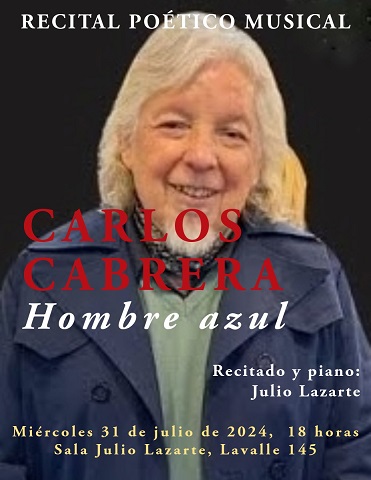 - Miércoles 31 de julio, “Hombre azul”, de Carlos Cabrera. Recitado y piano, Julio Lazarte.