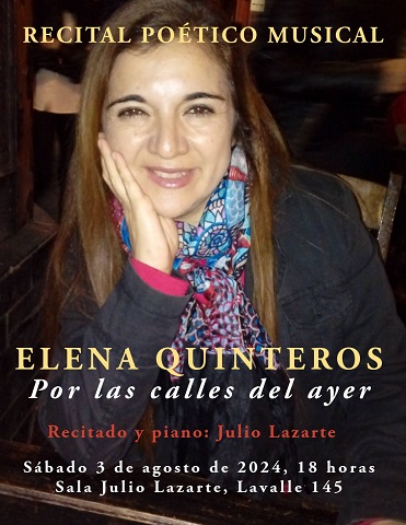 - Sábado 3 de agosto, “Por las calles del ayer”, de Elena Quinteros. Recitado y piano, Julio Lazarte.