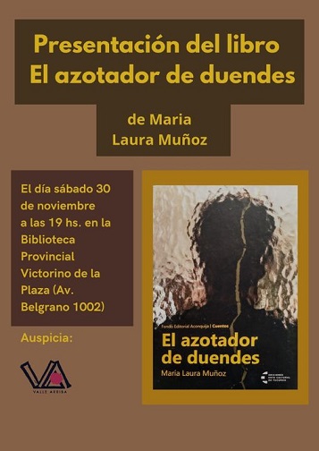 El libro “El azotador de duendes”, de María Laura Muñoz, que integra la colección publicada por el Ente de Cultura de Tucumán, a través del Fondo Editorial Aconquija (FEA), será presentado en la vecina provincia el próximo sábado 30 de noviembre.