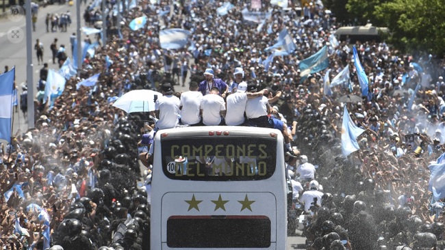 Durante la tarde del lunes y la mañana del martes, las autoridades de seguridad habían anunciado que el ómnibus bajaría de la Autopista Illía a la Avenida 9 de Julio para pasar finalmente frente al Obelisco, algo que finalmente no sucederá. La AFA les solicitó a las miles de personas que esperaban a los jugadores a la altura de Corrientes que se movilicen con calma hacia la zona de Constitución. “Es importante que todos y todas puedan ir movilizándose con calma hacia esa zona para disfrutar en paz de este inolvidable momento con los campeones del mundo”, anunció.