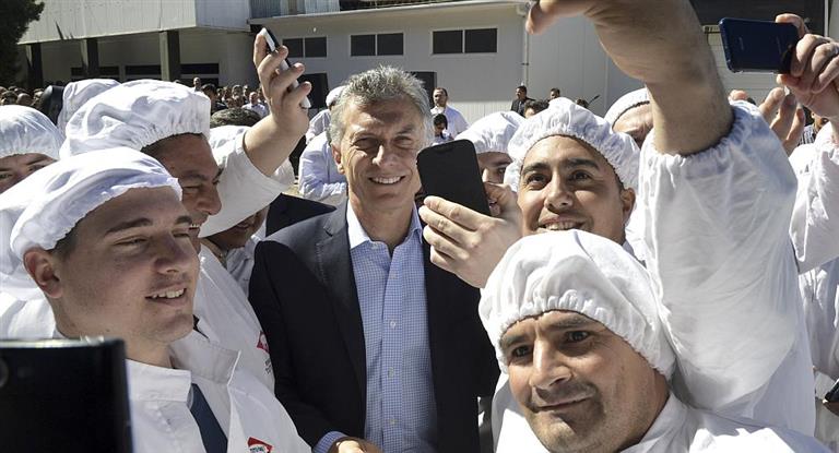 El Presidente visitó un frigorìfico en la localidad santafesina de Reconquista.
