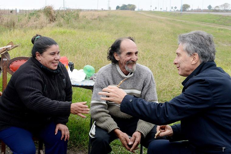 La pareja se mostró sorprendida cuando el Jefe del Estado bajó del automóvil frente a la parrilla, en la localidad de Cuatro Esquinas, ubicada en una zona rural a unos 30 kilómetros al sur de Rosario y compuesta por seis manzanas, y se sentó a compartir unos mates y charlar con Farías y su mujer, Mónica Silva.