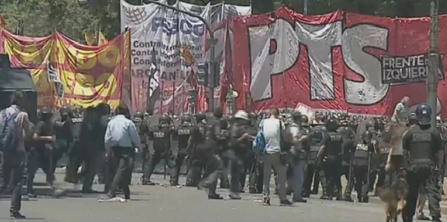 Agrupaciones de izquierda empezaron a arrojar piedras, palos y bombas molotov a un cordón de oficiales de la Policía de la Ciudad que custodiaban el vallado que rodea al Congreso de la Nación.
