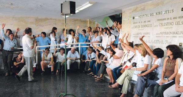 Así lo decidieron los trabajadores de los distintos nosocomios durante la asamblea interhospitalaria del gremio de SiTAS, llevada a cabo este mediodía en el Hospital del Niño Jesús. No es solamente por las agresiones que sufren médicos y demás agentes sanitarios en hospitales y CAPS, sino también ante la falta de dialogo de la ministra de Salud, Rossana Chahla, quien no sólo no escucha los diferentes reclamos del sector, sino que también agrede con autoritarismo y gritos a los delegados que osan molestarla con algún pedido.