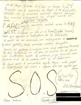 “Llevamos 37 días durmiendo en el piso, la comida es de perro, nos maltratan hasta la violencia”, señalan los balseros en el mensaje de auxilio enviado en la botella e impulsado por guantes de látex inflados, en el que también denuncian que una de las dos mujeres del grupo está enferma.