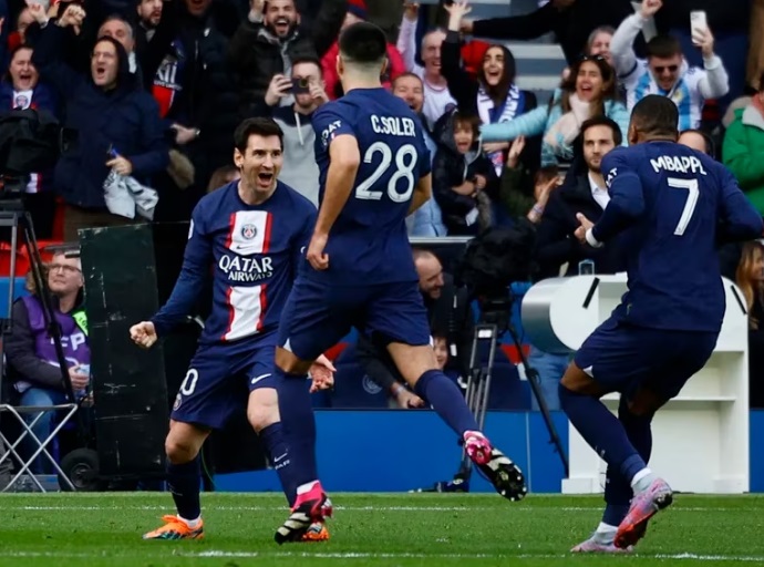 En un partido en el que casi no había tenido participación, apareció el astro argentino para ejecutar de manera magistral un tiro libre que le dio la victoria al conjunto parisino por 4-3.