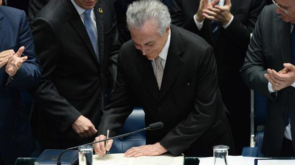 Michel Temer juró este miércoles ante el Congreso Nacional como nuevo presidente de Brasil, un cargo al que fue alzado por la destitución de la mandataria Dilma Rousseff, decidida apenas unas horas antes por el Senado.