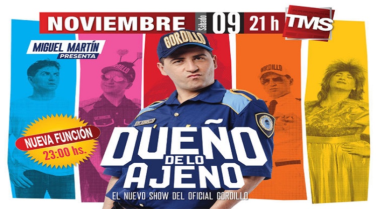 El 9 de noviembre a las 21 y 23 horas, en el Teatro Mercedes Sosa, Miguel Martín presenta dos funciones de “Dueño de lo ajeno”, un show completamente renovado, que completa la trilogía de shows referidos al robo. Una idea que comenzó con «Delincuente del humor», siguió con «Choreando a lo grande» y que ahora llega a su final.